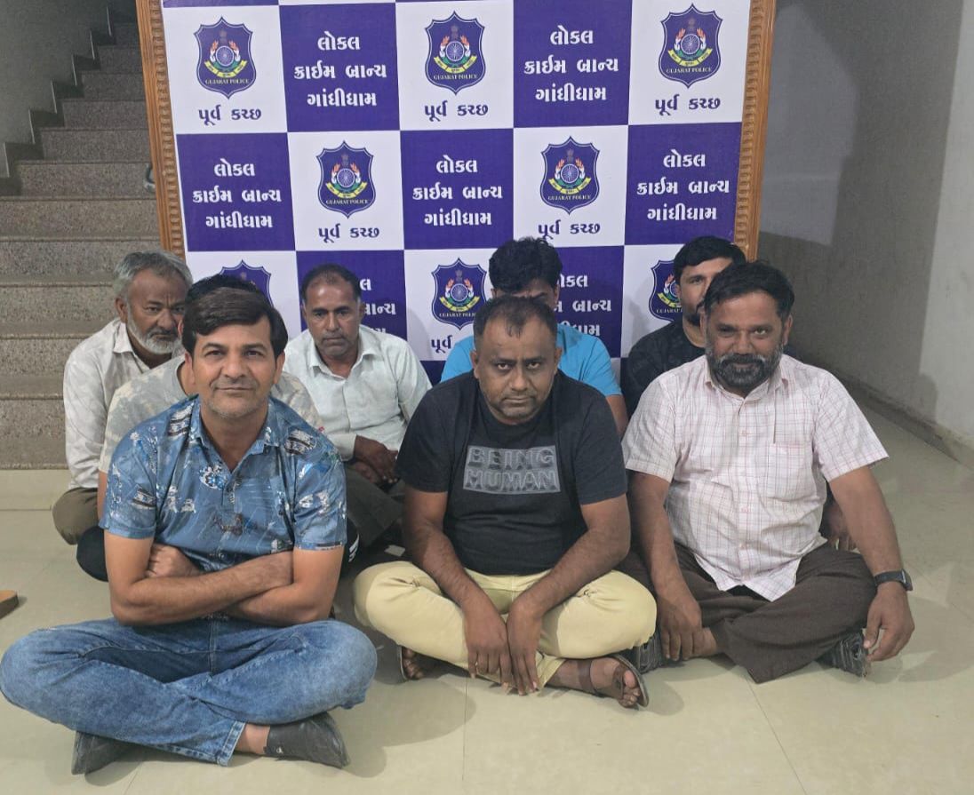 લોકલ ક્રાઈમ બ્રાન્ચ, પૂર્વ કચ્છના પોલીસ ઈન્સપેક્ટર એન.એન.ચુડાસમાની આગેવાનીમાં એલ.સી.બી.ટીમ આદિપુર વિસ્તારમાં પેટ્રોલીંગમાં હતી તે દરમ્યાન મળેલ બાતમી હકીકત આધારે કેશરનગર અને શાંતિનગર વચ્ચે આવેલ ડીશ ટીવીની પાછળ શેરીમાં, આદિપુર ખાતે જાહે૨માં ગંજીપાના વડે પૈસાની હારજીતનો જુગાર ૨મતા ઈસમો ઉપર રેઈડ કરી આઠ આરોપીઓને પકડી પાડી કાયદેસરની કાર્યવાહી કરી આગળની કાર્યવાહી માટે આદિપુર પોલીસ સ્ટેશનને સોંપવામાં આવ્યા હતા.