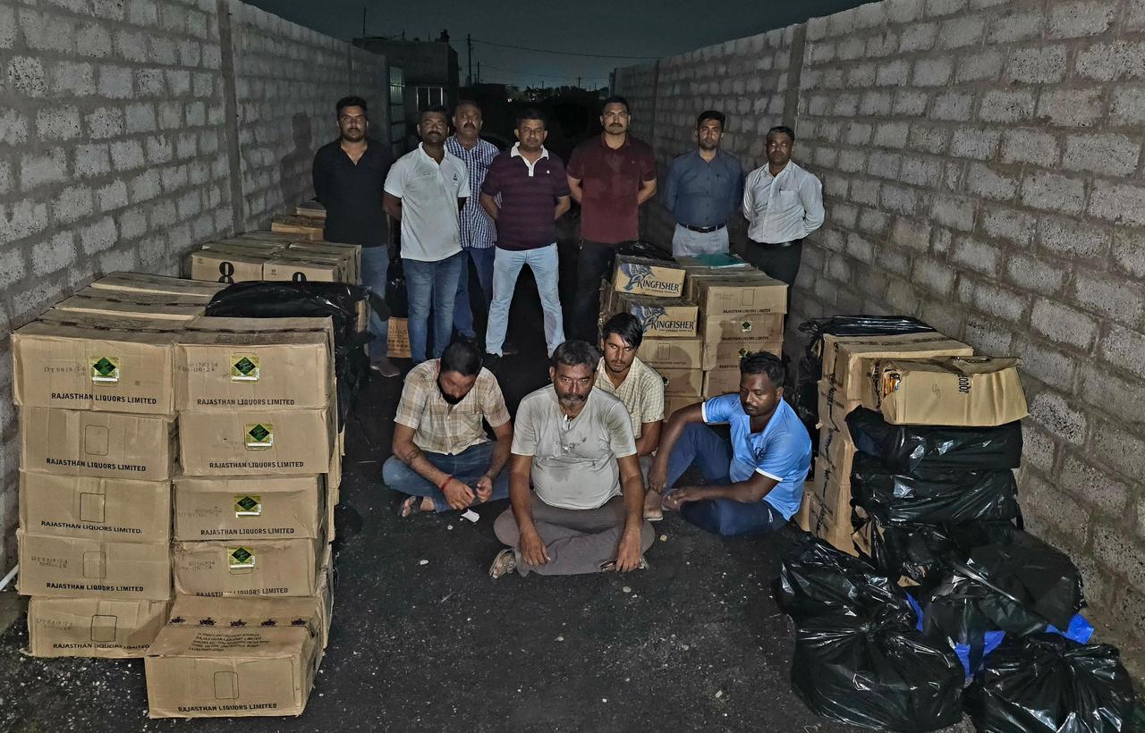 આ અંગે પોલીસે આપેલી વિગતો મુજબ એલ.સી.બી. ની ટીમ પેટ્રોલીંગમાં હતી ત્યારે બુટલેગ૨ નિલેશ ઉર્ફે ટીંકુ સોલંકીએ રહેણાંક મકાનમાં અંડર ગ્રાઉન્ડ ટાંકામાં વિદેશી દારૂનો જથ્થો સંગ્રહ કરી તેની હેરફેર કરવાની તૈયારી કરી રહ્યો હોવાની બાતમી મળતાં રેઈડ કરી હતી જેમાં ભારતીય બનાવટનો વિદેશી દારૂની અલગ-અલગ બ્રાંડની બોટલો નંગ-૩૬૭૨ સાથે આરોપીઓ નિલેશ ઉર્ફે ટીંકુ ભગવાનજી સોલંકી (માલી), દિપકભાઈ કાંતીલાલ ઠક્કર, મંગલ વિક્રમસિંગ નાયક, ૨મેશકુમાર નરનારામ ચૌધરી (જાટ)ને જુદી જુદી બ્રાન્ડના વિદેશી દારૂનો જથ્થો કુલ કિંમત રૂપિયા ૭૩૬૮૦૦ સાથે ઝડપી લીધા હતા જયારે આરોપી અંકિત ચૌધરીનુ નામ ખુલતા પાંચેય આરોપીઓ વિરુદ્ધ પ્રોહિબિશન એક્ટ હેઠળ ગુનો નોંધી કાર્યવાહી હાથ ધરી છે.
