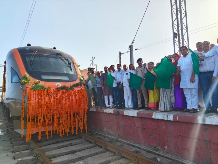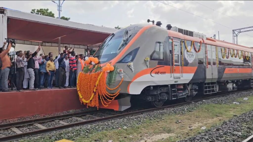 વડાપ્રધાન નરેન્દ્ર મોદીના વર્ચુઅલ માધ્યમથી અત્યાધુનિક સુવિધાથી યુક્ત સ્વદેશી તકનીક થી નિર્મિત દેશની પ્રથમ નમો ભારત રેપીડ ટ્રેનનો ભુજ-અમદાવાદ શુભારંભ કરાવવામાં આવ્યો હતો