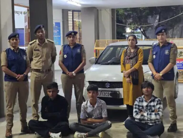 ભુજ એ ડિવિઝન પોલીસ મથકના વિસ્તારમાં પેટ્રોલીંગમાં નીકળેલા મહિલા સી ટીમના એએસઆઇ શીતલબેન પીરાભાઇ નાઇ, રમીલાબેન શાહુ, ગાયત્રીબેન બારોટે મંગળવારે અઢી વાગે ઓલ્ફ્રેડ હાઇસ્કુલ તરફથી આવતી નંબર પ્લેટ પર ચેકચાક સાથેની સ્વીફ્ટ કારને ઇન્દ્રાબાઇ ગર્લ્સ હાસ્કુલ પાસે પકડી પાડી હતી. જેમાં કનૈયાબે ગામે જવાહર નગરમાં રહેતા કાર ચાલક રામ સામજી ગાગલ, સુમાર હાસમ નોડે, સાહિલ ગની બાદા નામના ત્રણ યુવકને નશાની હાલતમાં પકડી પાડ્યા હતા. કારમાં તપાસ કરતાં દારૂની બોટલ મળી આવી હતી. ત્રણેય આરોપીઓને એ ડિવિઝન પોલીસ મથકે લઇ જઇને પ્રોહિબીશનના કેસમાં ફીટ કરીને લોકઅપમાં પુર દઇ આગળની કાર્યવાહી કરી હતી.