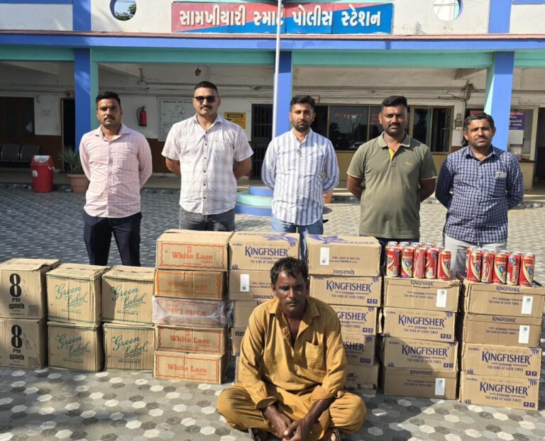 સામખ્યાળી પોલીસ સ્ટેશન વિસ્તારમાંથી રૂપિયા ૧,૦૨,૮૪૦ નો વિદેશી દારૂનો જથ્થો લોકલ ક્રાઈમ બ્રાન્ચ પુર્વ કચ્છએ ઝડપી પાડ્યો હતો.